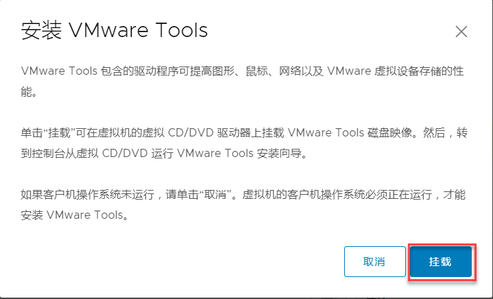 2.确认挂载VMware Tools安装镜像。