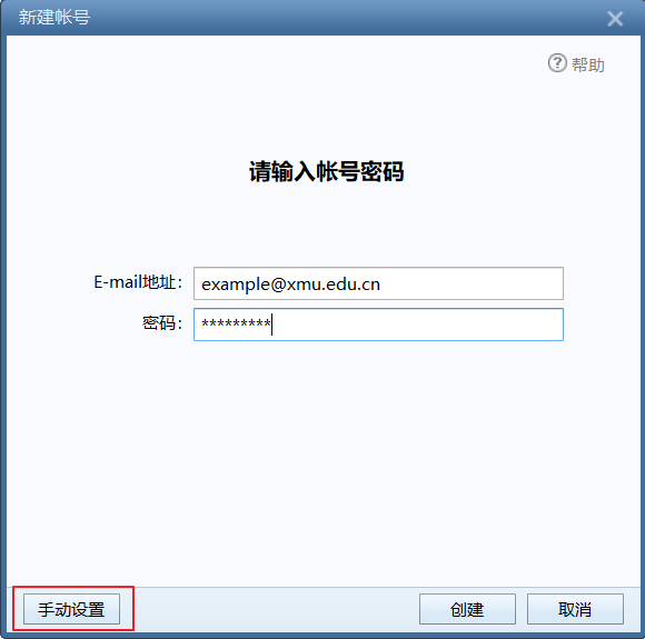 1.由于Foxmail默认是以IMAP方式收取邮件,且账户建立之后无法修改收件方式,所以想使用POP3方式收取邮件需要在输入账号和密码那一步时选择手动设置。
