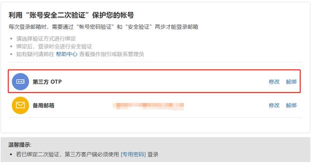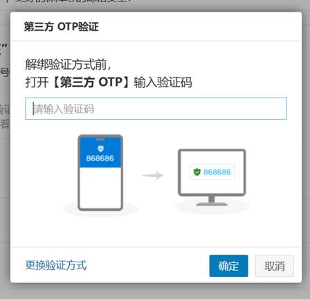 (1) 二次验证选择“第三方OTP解绑”,如“图3-1-1”