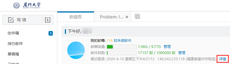 查看登录记录的方法是登录进入网页版邮箱首页后,点击最近登录信息后面的详情,如图所示。