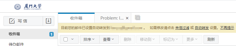 目前邮箱开启了自动转发提醒,进入网页版邮箱后,点击任何一个文件夹,比如收件箱,如果有设置自动转发,会在邮件列表上方进行提示,如图所示。