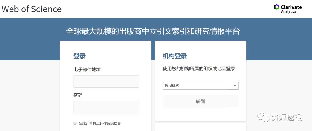第一步: 访问Web of Science数据库主页