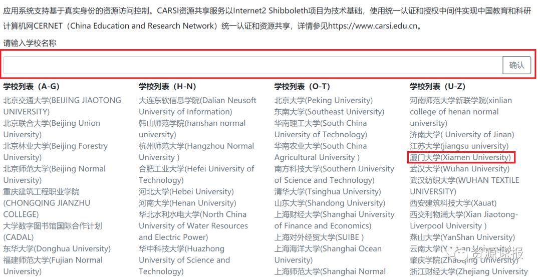 此外,中国教育和科研计算机网统一认证和资源共享基础设施(CERNET Authentication and Resource Sharing Infrastructure,简称CARSI)为厦门大学全校师生提供一种通过CARSI在校外直接访问部分电子资源的方法,无需使用VPN。