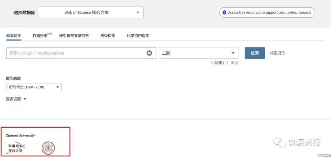 http://www.webofknowledge.com/?DestApp=WOS,选择‘厦门大学’