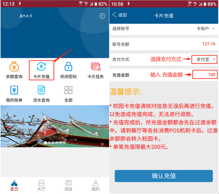 厦门大学校园卡小灵龙APP使用指南
