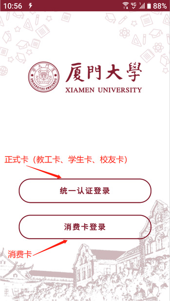 3. 正式卡请选择 统一身份认证登录,消费卡请选择 消费卡登陆。