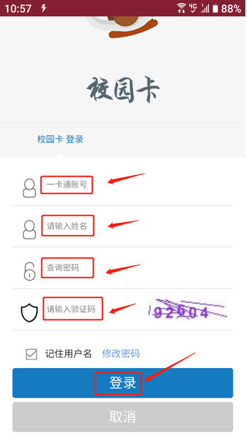 5. 消费卡登陆,输入一卡通账号、姓名、查询密码和验证码,点击登录