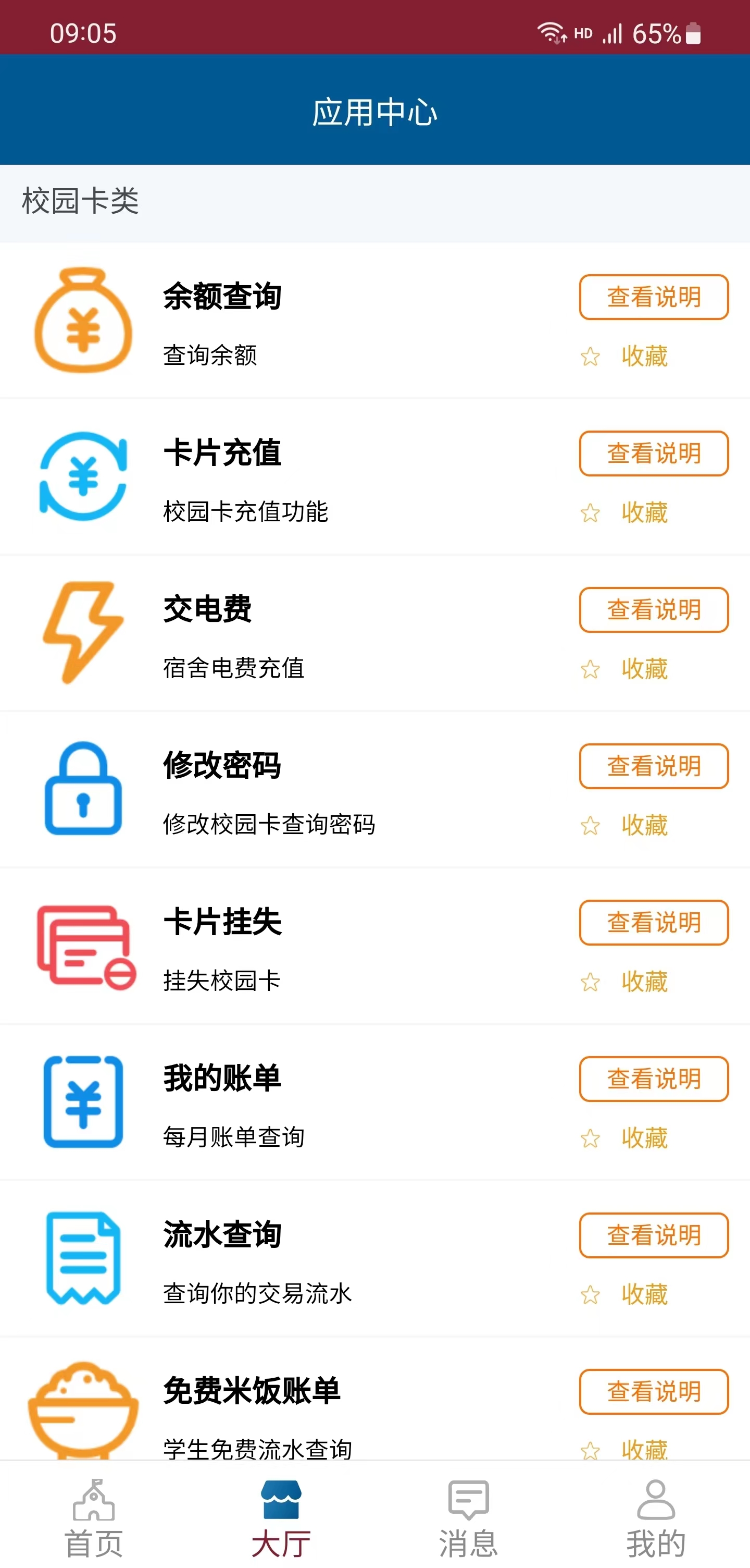 8. 登录小灵龙APP后,用户还可以进行余额查询、流水查询、修改查询密码、卡片挂失、缴纳学生宿舍电费等操作。