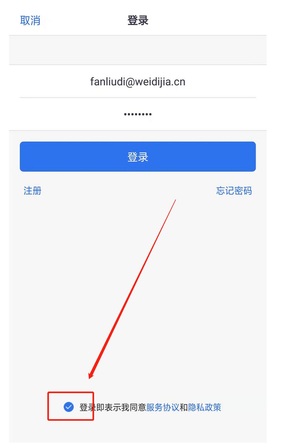 登录时须勾选“同意隐私协议和服务条款”