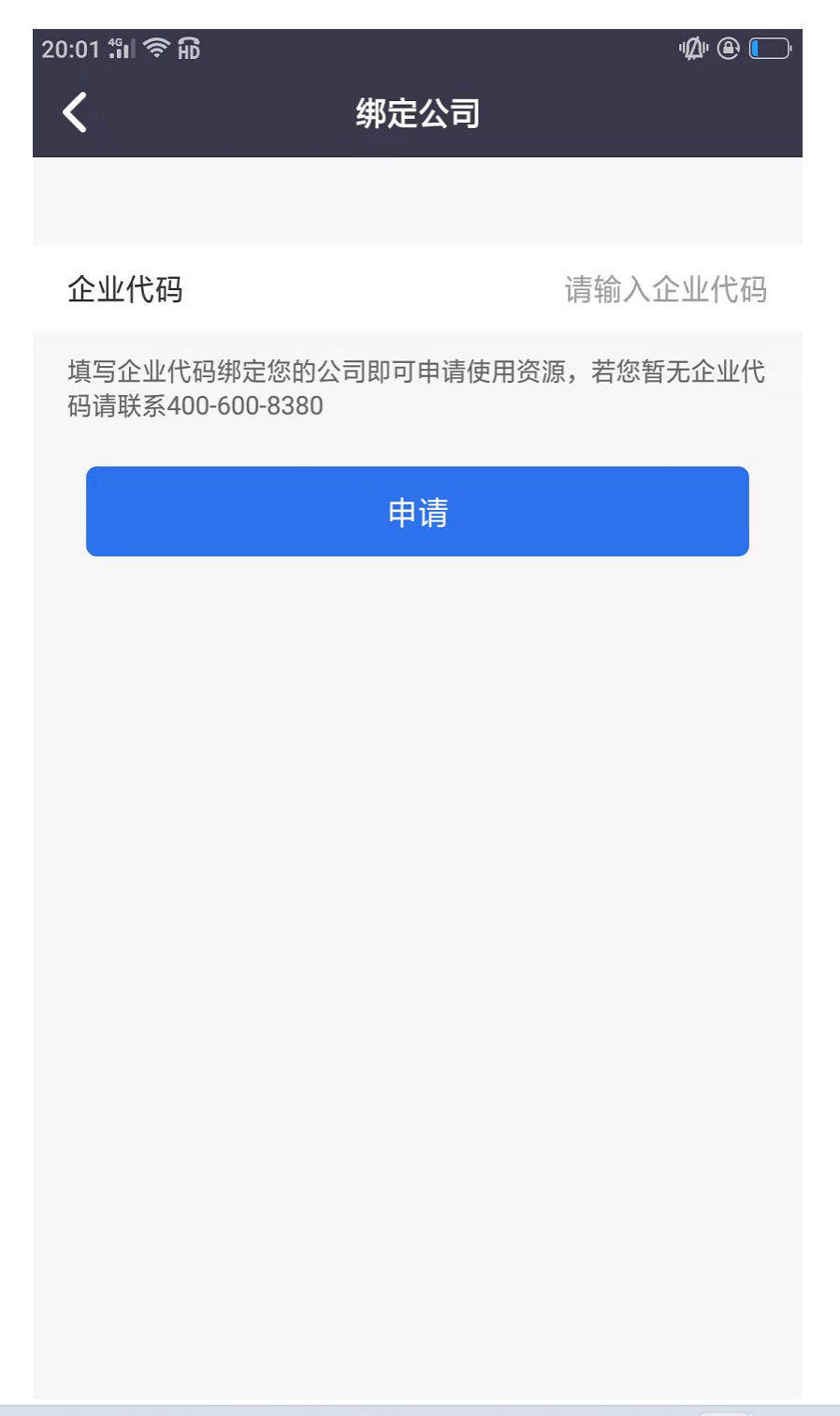 输入企业代码后点击“绑定公司”,将自动加入该企业并分配默认资源50方。
