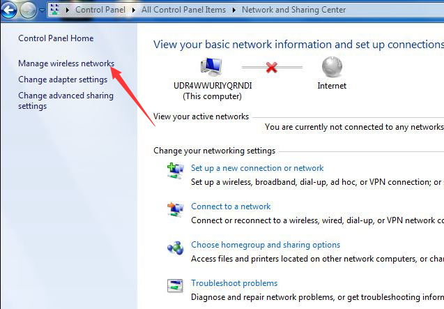1、Enter the [Control Panel] -> [Network and Sharing Center], and follow the red arrows to complete the operation.
