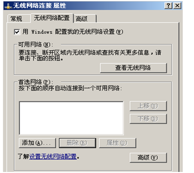 1、按照【控制面板】->【网络连接】,在【LAN或高速INTERNET】下可以看到无线网络连接,找到“无线网络连接”图片,选择“属性”,进入第二个页面“无线网络配置”。