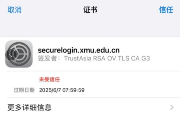 苹果系统设置方法,在输入用户名和密码后,还需要选择证书信任。