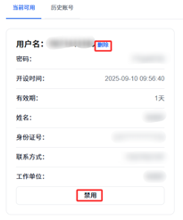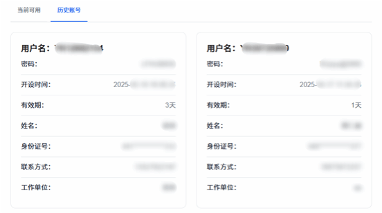 2、主界面“历史账号”功能显示既往申请的已失效账号。失效账号不占用账号限额。