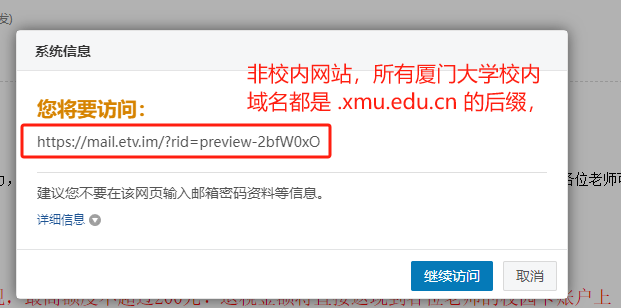 如果您不慎点开的链接地址,邮件有如下弹窗提示。