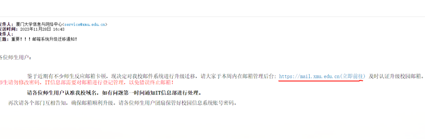 或者您可以搜索“厦门大学信网中心”公众号,阅读《这样的钓鱼邮件,你中招了吗?》 https://mp.weixin.qq.com/s/C2o0D6s_jk25ZbJdGEk7ZQ 文章进行更多的学习。
