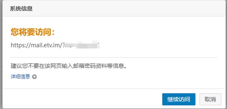 3. 邮件内容特意隐藏了真实的URL链接。邮件里面写的是mail.xmu.edu.cn ,真实的跳转地址却是mail.etv.im,需要进一步怀疑。