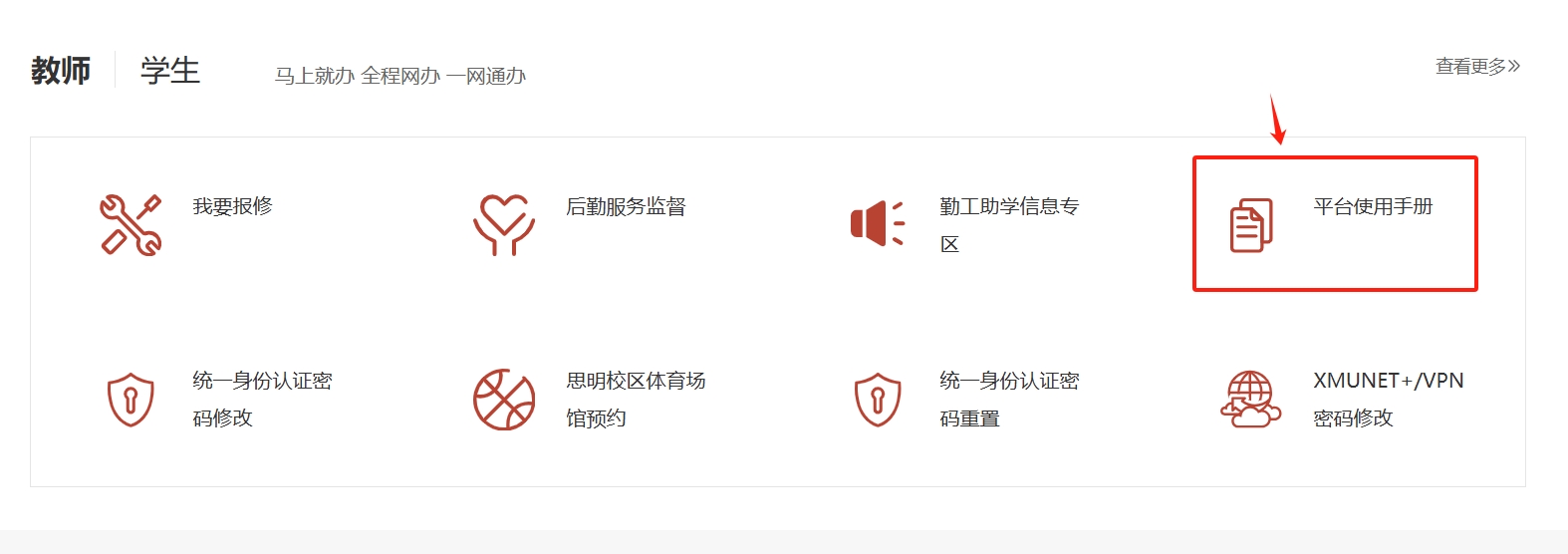 如需获取更多详细的用户使用手册,请通过信息门户首页的【平台使用手册】入口进行查阅。